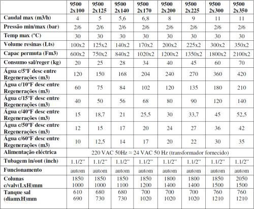 DESCALCIFICADORES DUPLEX FLECK 9500 tabela